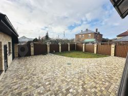 Участок выстлан брусчаткой, освещение по периметру, охрана, домофон, автоматически ворота, навес на 3-4 автомобиля, туалет, хоз. помещение.