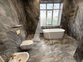 В доме выполнен дизайнерский современный ремонт, высокое потолки , дизайнерские вставки из натурального дерева , молдинги , многофункциональные режимы освещения, светло-пастельные современные цвета делают пространство еще более светлее и просторнее !