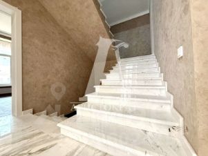 Первый этаж : большой и просторный холл , гостиная , кухня-столовая , гостевой санузел , гостевая комната, зимний каминный зал с витражными окнами и выходом на летнюю веранду, шикарная лестница с автоматической подсветкой выполнена из мрамора .