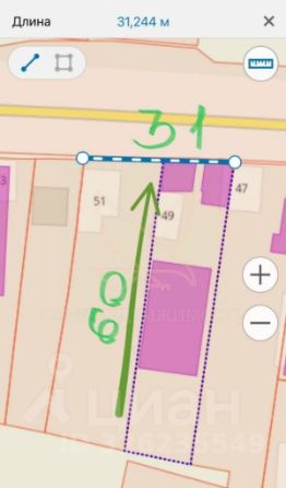 - Глубина участка 60 м