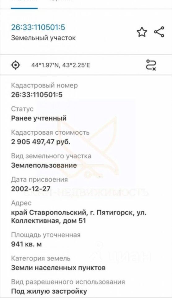 Продажа участка в Пятигорске