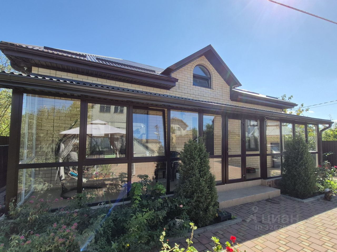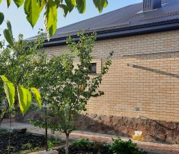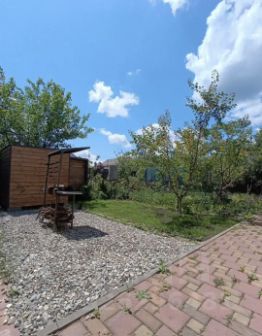 Весь участок огорожен забором, имеется хороший сад, огород, клумбы с декоративными растениями, двор выложен брусчаткой.