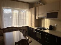 Дом из кирпича, фундамент бетон - монолит. Построен на две квартиры с отдельными входами. По документам - дом. В нашей части дома большая кухня 14,6 м2, три спальные комнаты (13,7+13,1+9,6 м2), большой совмещенный санузел 4,7 м2, прихожая правильной формы, и навес на две машины с асфальтированным двором и забором по периметру.