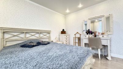 На земельном участке площадью 6 соток расположен уютный дом площадью 100 кв.м, а также большая беседка, бассейн. Дом строился для себя, поэтому в отделке использованы только качественные материалы, дизайнерский ремонт ,продуманная планировка.