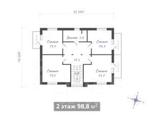 2 этаж: 4 спальни с балконами и ванная комната