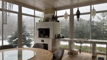 Входная группа, кухня, большая гостиная, большая отапливаемая застекленная терраса с мангальной зоной и зоной отдыха.