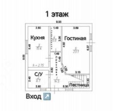 — 1й этаж: прихожая, с/у, гостиная, кухня, гардеробная, выход на террасу;