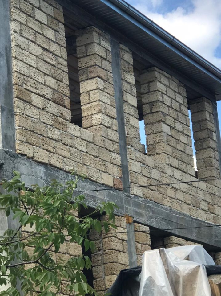 Участок ИЖС 422 м² (находится в долгосрочной аренде до 2072 г.) с авторским домом в стадии завершения. Новый (объект незавершенного строительства), получение адреса, площадь 264 м², реконструкция существующего здания - 59 м². Конструктив: Монолитный каркас (колонны 30х30), заполнение ракушечником толщина 40 см. На каждом этаже возведены стены под ванные комнаты 9 м² с окнами, всего предусмотрено 5, 1 санузел с душем действующий. В стенах из ракушечника и части забора предусмотрены готовые ниши для эрклеза-стекла. Доп. площади: Залита монолитная плита под оранжерею и топочную 8 на 3 м. Забор из дикого камня. На углу дома монолитная лестница из бетона (колонны 30х30) до 2го этажа, шириной 1,40 м. Газ, центральная городская канализация, водопровод, 215 кВт на независимых фазах. Интернет Ростелеком, видеонаблюдение. Грузовой подъемник на фасаде 250 кг. 2 балкона по 8 м², 2 террасы 20, 30 м². Потолки: с фактурным оттиском дерева. Полы: мозаика (терраццо) 90%, готова под финальную шлифовку с эффектом естественного износа под старину. Угловой участок на пересечении, удобный заезд с ул. Катыхина и внутренний проезд. 50 метров до туристической тропы в Березовское ущелье.