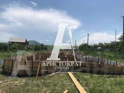 Участок угловой, ровный, с готовым фундаментом.