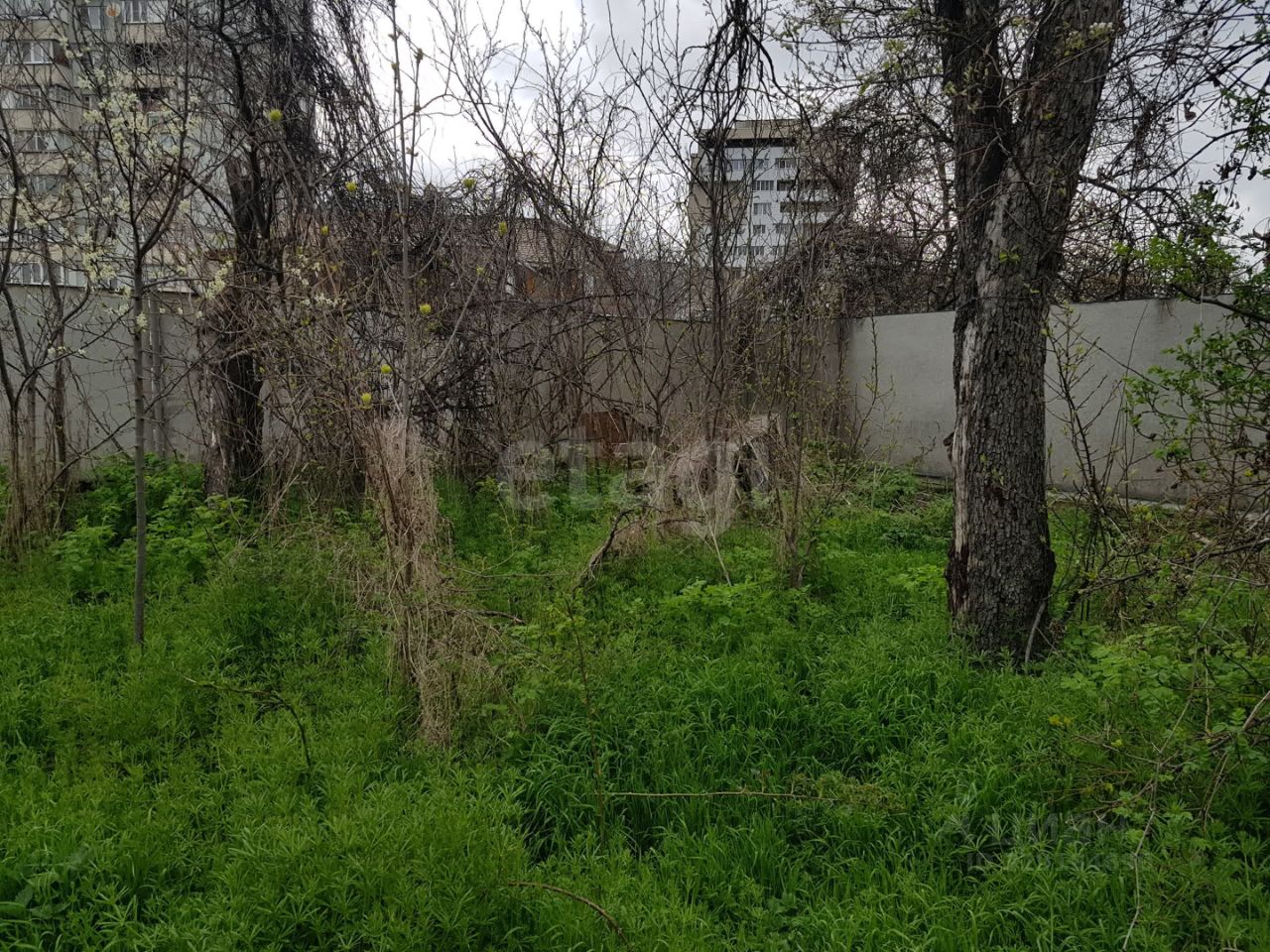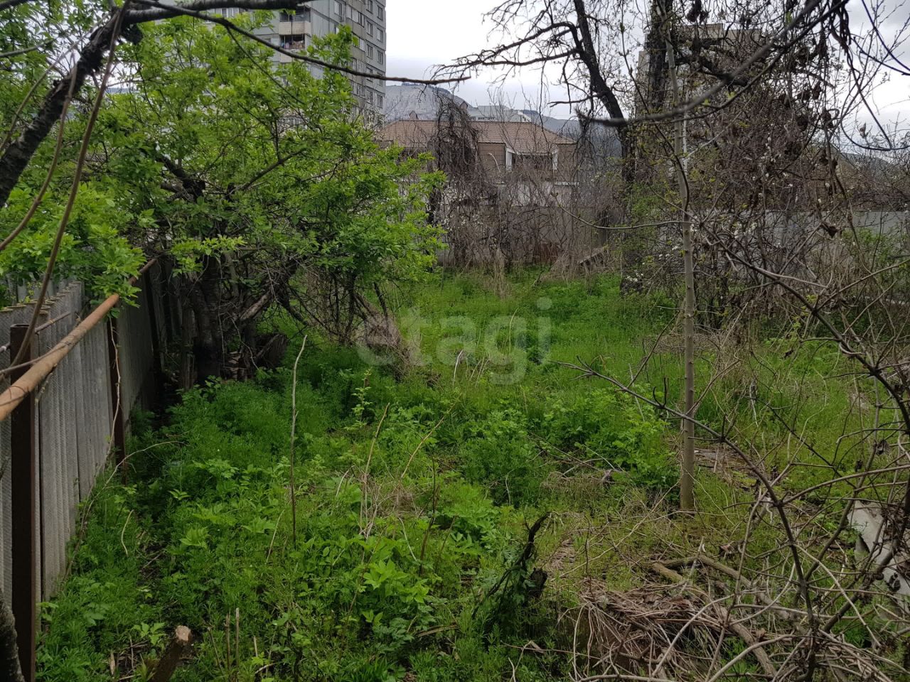 На участке остались развалины старых строений. Есть лицевые счета, газ, вода, электричество. Фасад 14 м.