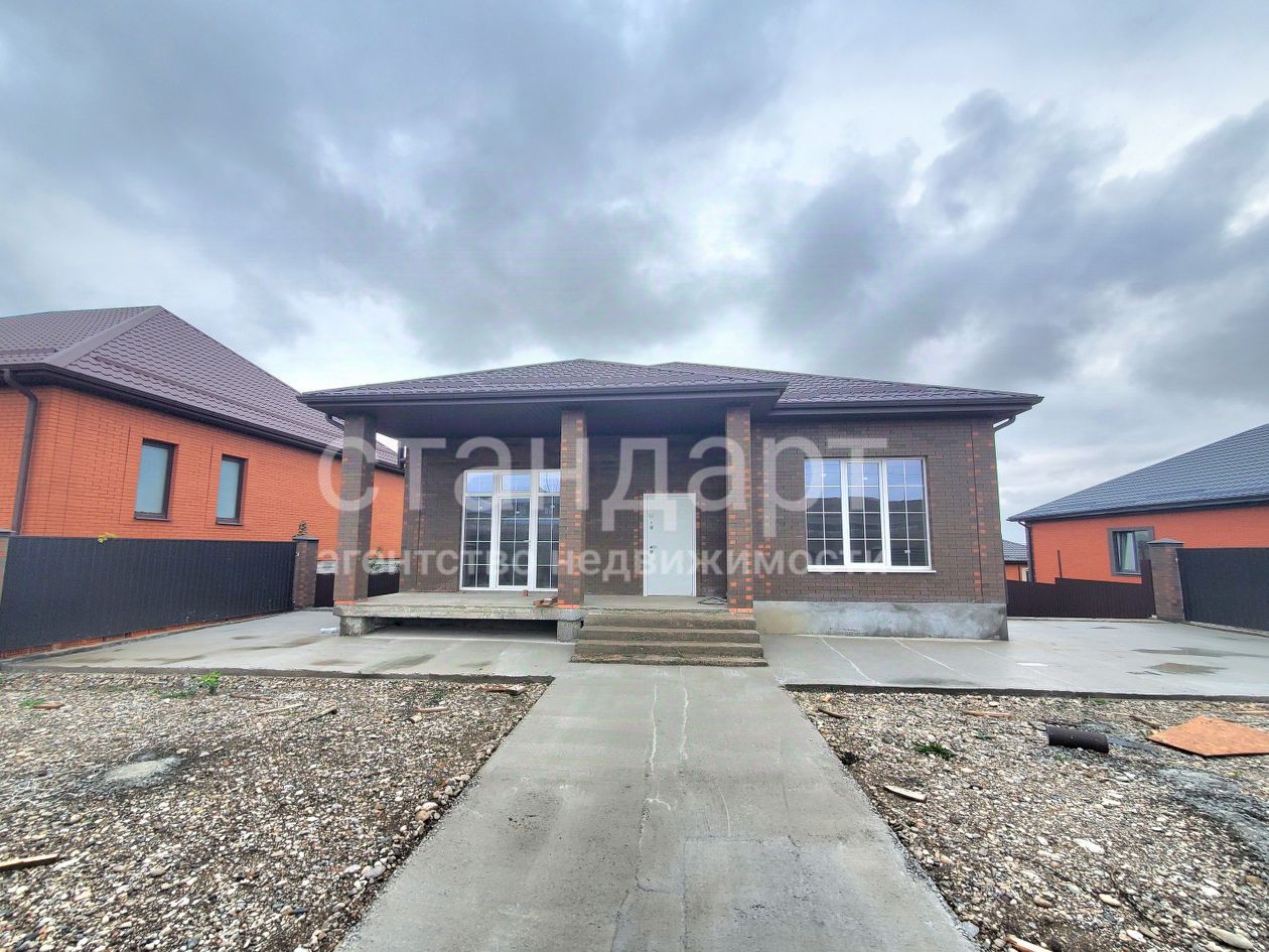Очень удобная планировка: просторная кухня с выходом на крытую террасу с фасадной стороны дома, зал, три спальные комнаты, два санузла, гардеробная, прихожая. Под частью дома есть цокольный этаж площадью 45 м2 (входит в площадь дома) с отдельным входом.