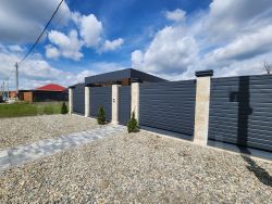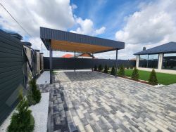 Откатные автоматические ворота ( smаrt). Все металлоконструкции в пред домовой территории и кровельной части дома , толщина металла 0,5 мм, и заводской гарантией 30 лет .