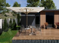 Внутреннее пространство продумано до мелочей и включает уютную отдельную спальню, современную кухню, светлую гостиную и полноценный санузел. Дом укомплектован всей необходимой мебелью и качественной бытовой техникой. Панорамное остекление наполняет комнаты естественным светом и стирает границы между интерьером и природой.