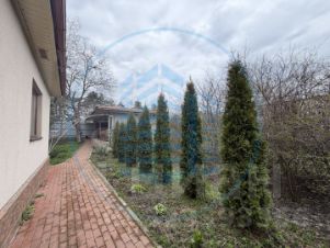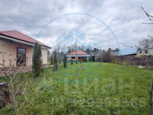 Весь участок засеян травой, посажен молодой сад, сортовой виноград, декоративные кустарники и цветы.