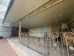 Перед домом площадка вымощена тротуарной плиткой и накрыта навесом.