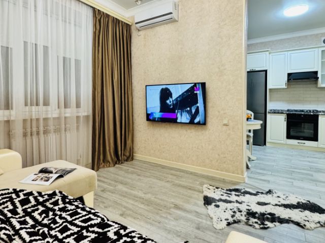 -чистую уютную однокомнатную квартиру 65 м², со всем необходимым для комфортного проживания (двухспальная кровать с ортопедическим матрасом раскладывающийся диван; подушки, одеяла и текстиль; посуда, средства гигиены, одноразовые тапочки, полотенца и т.д.)., панорамный балкон с видом на горы Бештау и Эльбрус.