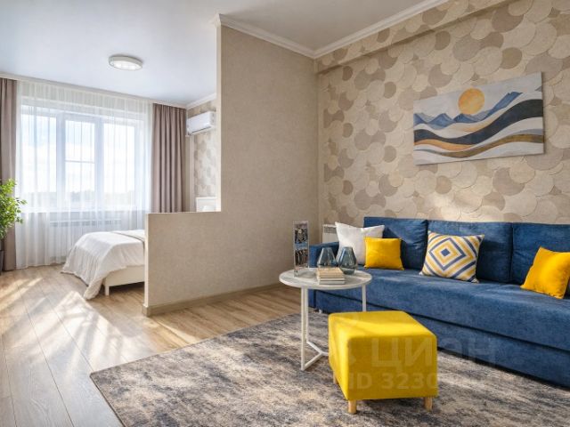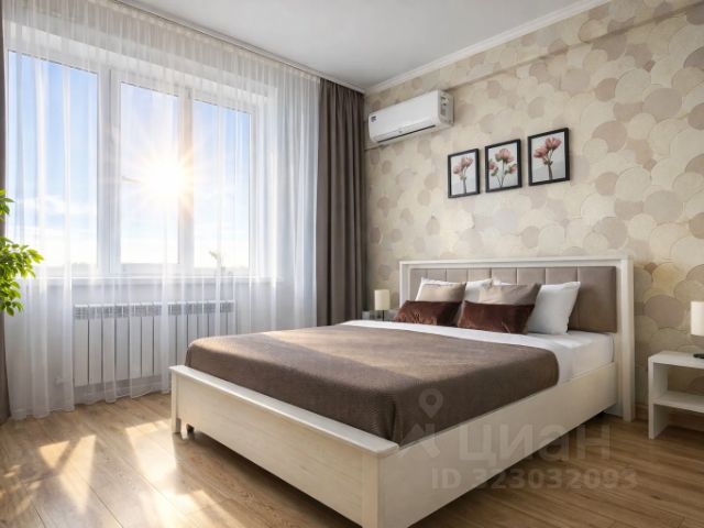 Спальня: Широкая двуспальная кровать с качественным матрасом и подушками Аскона. Для компании предусмотрен удобный двуспальный диван на металлическом каркасе (тоже Аскона). Блекаут текстиль, зонированное освещение.
