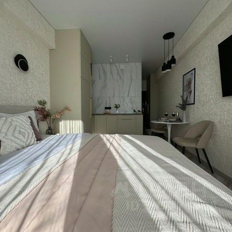 •Функциональное кухонное пространство. Есть все необходимое (посуда, кастрюли, сковородки, кружки, столовые приборы и т.д.). В наличии минимальный набор продуктов: растительное масло, соль, сахар, чай, кофе.