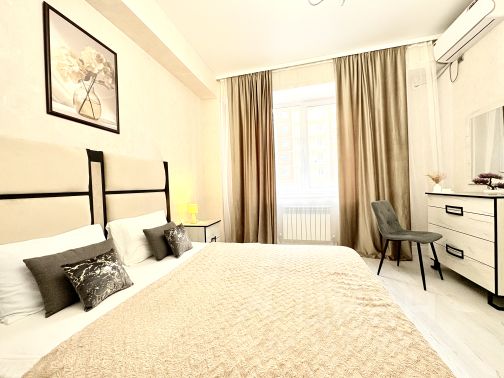 Вашему вниманию представлена абсолютно новая квартира люкс класса в центре Пятигорска с бесконтактным круглосуточным заселением Мы предоставляем документы и чеки командированным гостям для вашей бухгалтерии. Красивая, видовая квартира на прекрасный Машук. Дизайнерский ремонт этого объекта, в центре города, не оставит равнодушными наших гостей. Цветовое оформление этой квартиры и ее функциональность производит спокойствие и комфорт. Апартаменты прекрасно сочетают в себе стильный интерьер и домашний уют. Большая двуспальная кровать с качественным, новым матрасом для вашего прекрасного сна. Это ИДЕАЛЬНЫЙ ВАРИАНТ для комфортного отдыха, с видом на горы Будем рады разместить семьи с детьми , деловых людей в командировке , пар для запоминающегося романтичного свидания и наших гостей города, со всех уголков земли. Квартира расположена на 9 этаже. Великолепные виды на город и Машук. Недалеко от нашего дома кофейня, с вкуснейшими круассанами в городе, где вы можете насладиться ими за чашечкой чая или кофе. Так же у дома находится,супермаркеты , детская площадка и многое другое. Мы знаем почему эта квартира может подойти Вам?! Квартира находится территориально в удобном районе. Самый центр города ,в пешей доступности: Курортная зона Парк Цветник Проспект Кирова с красивой прогулочной зоной (Бродвей) Центральный стадион Центральный парк Кирова с аттракционами Автовокзал Множество кафе и ресторанов Торговые центры Вкусно и точка Салоны мобильной связи Остановка общественного и междугороднего транспорта Пункты выдачи, банкоматы и медицинские учреждения Инфраструктурно развитый район Удобства для вас: - 4 спальных места: удобная двуспальная кровать и раскладной диван-кровать. - высокоскоростной WI-FI для вашего комфорта, огромный телевизор со Smart-TV и телевидением. - техника : стиральная машина, индивидуальное отопление, кондиционер, плита, холодильник, микроволновая печь, пылесос, электрочайник, утюг,фен и сушилка. - всегда чистые полотенца и постельное белье. - тапочки и зубная паста с щеткой, индивидуально для вас. - посуда и необходимый инвентарь для приготовления пищи. - для вас всегда есть кофе и чай в квартире. Обязательно угощайтесь :) - Размещаем командированных гостей, предоставляем чеки и отчетные документы. Так же мы рады предложить для Вас дополнительный сервис от наших партнеров - в период проживания и до заезда в наши апартаменты: - Прокат авто любого сегмента по привлекательным ценам. - Трансфер с аэропорта и ж.д. Вокзала - Скидки при длительном проживании приветствуются. Правила заселения: Бесконтактное круглосуточное заселение. Вы получаете инструкцию и заселяетесь, следуя всем указаниям. - Расчетное время: заселение с 14.00, выезд до 12.00 - Не сдаётся для мероприятий и шумных вечеринок! - При заселении наличие паспорта. Используется видеонаблюдение на этаже, в качестве обеспечения Вашей безопасности и сохранности нашего имущества. Снять апартаменты на месяц в Пятигорске.