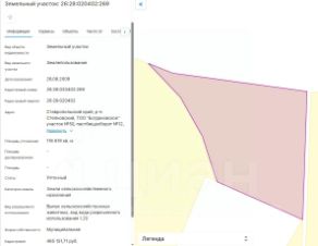 Земельный участок с кадастровым номером 26:28:020402:269 площадь 118619 по адресу Ставропольский край, р-н Степновский, ТОО "Богдановское" участок 50, пастбищеоборот 12, поле 5