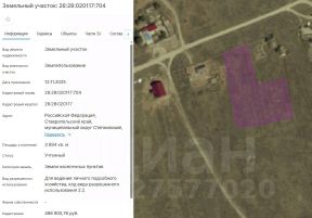 Земельный участок с кадастровым номером 26:28:020117:704 площадью 3894 кв. м по адресу: Российская Федерация, Ставропольский край, муниципальный округ Степновский, село Степное, улица Садовая, земельный участок 3в.