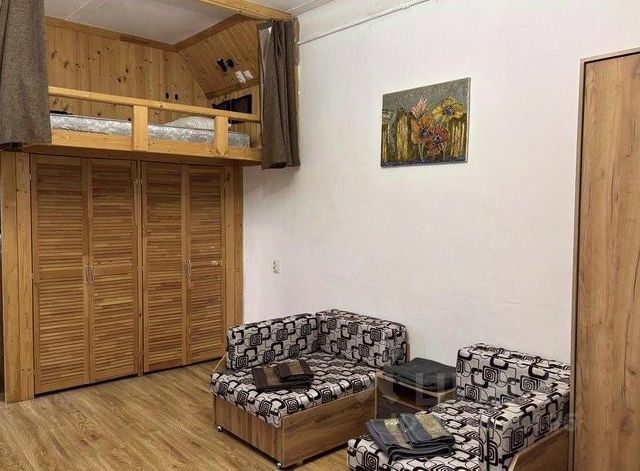 Сдается однокомнатная нестандартная квартира со вторым этажом (см. фото) Оформлена в стиле лофт из дерева. Балкон это целая терраса с мебелью для отдыха на свежем воздухе с видом на Боргустанский хребет. Особенно атмосферно здесь любоваться закатом Квартира расположена в кирпичном доме на третьем последнем этаже, поэтому выше только звезды Расположена в удобном месте: - 15 минут пешим шагом до Курортного бульвара и Проспекта Ленина (памятник "Экипаж"), 20 минут до Каскадной лестницы; - рядом в соседнем доме кофейня и вкусная недорогая столовая; - 3 минуты до магазина "Пятерочка"; - 5 минут до остановки "Санаторий Москва". Есть всё необходимое для проживания: Холодильник, микроволновая печь, плита, чайник, фен, полотенца, бойлер, стиральная машина, телевизор, Wi-Fi. На окнах сетки. Срок аренды от 3 суток. Заезд в 14-00, выезд до 12-00.