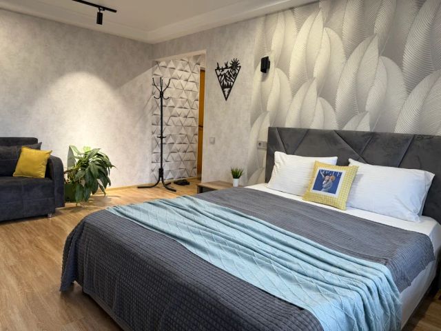 Стилизованная студия в центре города с двухспальной кроватью. Укомплектована всем необходимым для проживания 2 человек. Жд вокзал, остановки общественно транспорта в направлениях городов кмв, общепит, парк культуры и отдыха, все в шаговой доступности. Такси до аэропорта им. М. Ю. Лермонтова - 15 минут.
