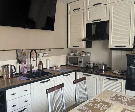 Посуда и приборы на 6 персон (газовая плита, микроволновка, блендер, электрический чайник, капсульная кофемашина, посуда для приготовления пищи)