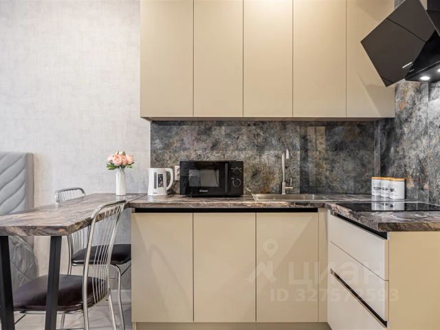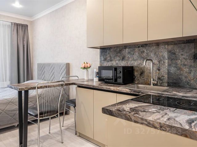 •Функциональное кухонное пространство. Есть все необходимое (посуда, кастрюли, сковородки, кружки, столовые приборы и т.д.). В наличии минимальный набор продуктов: растительное масло, соль, сахар, чай, кофе.