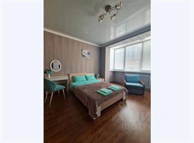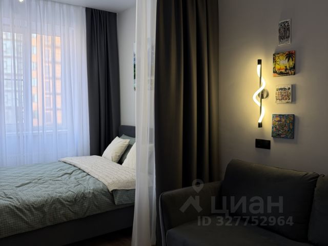 Спальня: Широкая двуспальная кровать с качественным матрасом и подушками Аскона. Для компании предусмотрен удобный двуспальный диван на металлическом каркасе (тоже Аскона). Блекаут текстиль, зонированное освещение.