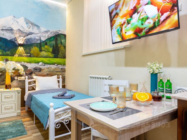 В квартире сделан дизайнерский ремонт. Окна квартиры выходят во двор,где открывается великолепный вид на гору Эльбрус