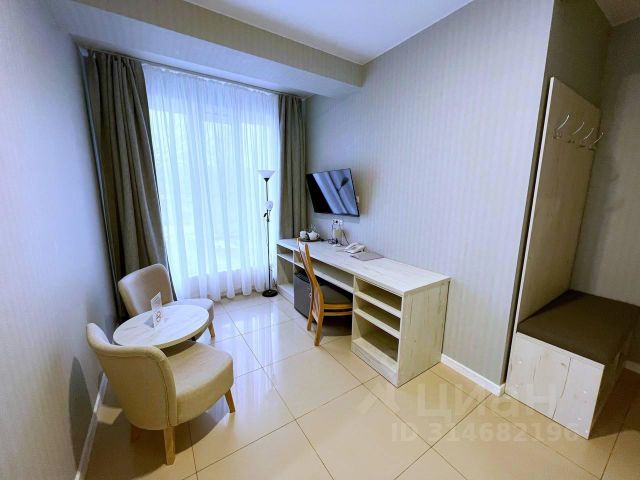 В номере: мини-кухня (микроволновая печь, плита, холодильник, посуда, столовые приборы, чайник, тостер), обеденный стол, кондиционер, телевизор, высокие потолки, шкаф, вешалки, зеркало, письменный стол, кофейный столик, стул, тапочки, светонепроницаемые шторы.